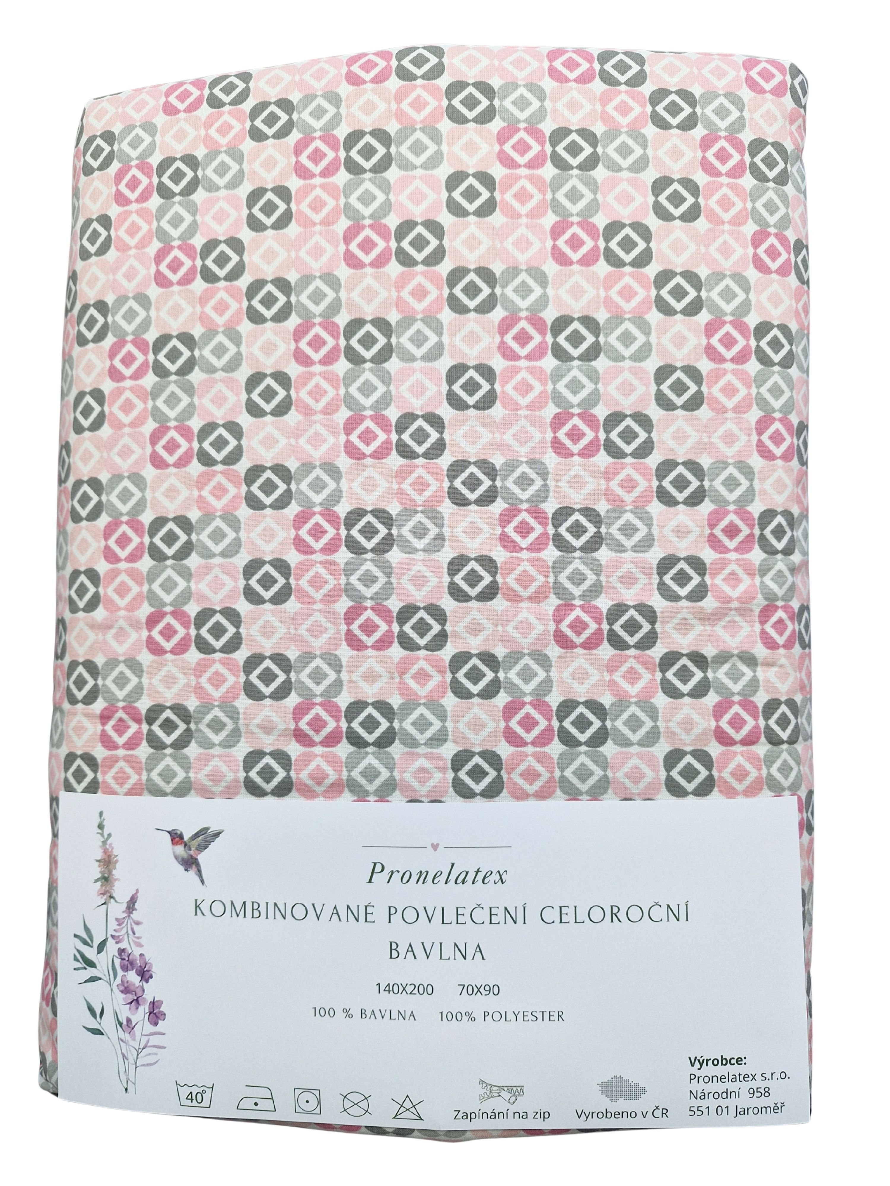 Mikroplyšové kombinované povlečení Růzový čtrvereček 140X200 70X90