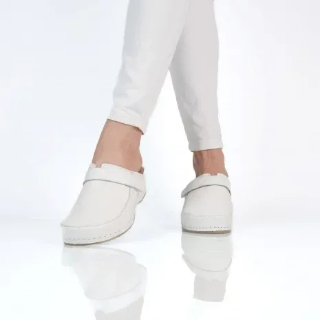 Dámské pantofle Batz Elena s uzavřenou špičkou v bílé barvě: velmi pohodlný a hezký kousek, který působí žensky a zároveň vysoce komfortně. Vyrobeny z výběrové kvalitní pravé kůže, s vyjímatelnou stélkou a proslulým anatomickým tvarováním, aby pro vás byl každý krok 100% pohodlný. Měkká kůže, zapínání na suchý zip, nastavitelný pásek a voňavé vložky zaručují bezbolestné a stylové dny. Jsou ideální pro každého - kdo vykonává práci vestoje, ale také ideální pro nošení v kanceláři. K dispozici v bílé a černé barvě - svršek černého modelu byl vylepšen materiálem s jemným květinovým vzorem.