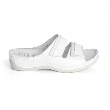 Dámské pantofle Batz Rea v bílé směsi. Komfort v perleťové barvě doveden k dokonalosti: dámská obuv, která se maximálně postará o vaše nohy. Extra měkký gelový polštářek v oblasti paty, vrstva paměťové pěny pod celou plochou chodidla, nastavitelné pásky na suchý zip, anatomicky tvarovaná struktura podrážky a kvalitní kožený materiál - mimo jiné díky těmto vlastnostem jsou tyto pantofle tak oblíbené. Kromě toho, že jsou odolné a opravdu velmi pohodlné, jsou také neuvěřitelně ženské. Kůže v perleťové barvě, která je krásná sama o sobě, je umocněna lesklým kostkovaným designovým prvkem a 4 cm podpatky, díky nimž jsou tyto boty opravdu krásné.